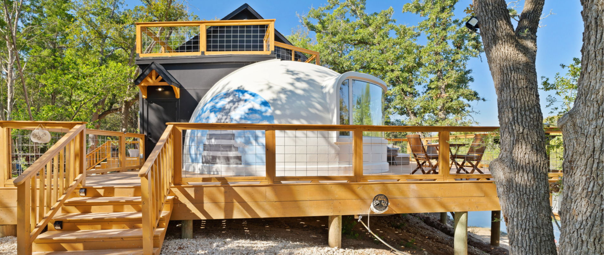 Welcome to The Sky Castle, a luxurious retreat just 35 minutes from the heart of Austin, TX. Here, elegance meets the clouds with panoramic views and unique domes. Relax in the outdoor tub, grab a book, and enjoy private beach cove access for canoeing and fishing. Roam among the clouds on various decks, soaking in the tranquil surroundings. The Sky Castle offers a serene escape where you can live among the clouds and create memories that will linger long after you’ve returned to earth.